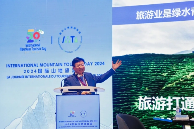 中国驻巴黎旅游办事处主任张郝淼主任表示,中国始终将推动旅游业可持续发展作为旅游业高质量发展的优先项和关键驱动力,相信中法两国能够携手合作,与各国共同探索和实施有效的解决方案,进一步推动全球山地旅游的可持续发展。山地旅游是旅游业的重要支柱,同时为许多山地社区带来繁荣和发展。作为第一个专注于山地旅游的国际组织,国际山地旅游联盟在贵州的成立,为中国在旅游领域开展国际合作与交流提供了重要平台,也推动了山地旅游的可持续发展,希望通过更多像“国际山地旅游日”这样的平台,促进山地旅游领域的国际交流与合作,分享保护山地资源、应对气候变化等方面的宝贵经验和解决方案,捍卫“旅游无国界”理念,推动山地旅游快速发展,为中法两国人民带来更大福祉。