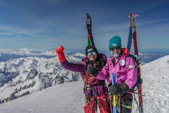 高宁(右)、杨小华成功登顶法国勃朗峰 图源:国际山地旅游联盟