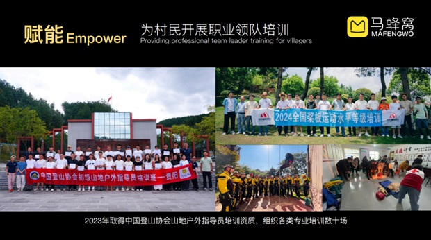 另外,我们有87名户外领队大部分来自当地村民,这些领队均由专业机构提供技术培训并获得证书,包含中国登山协会户外指导员证书、全国桨板运动水平等级证书、中国红十字救援证书等。
