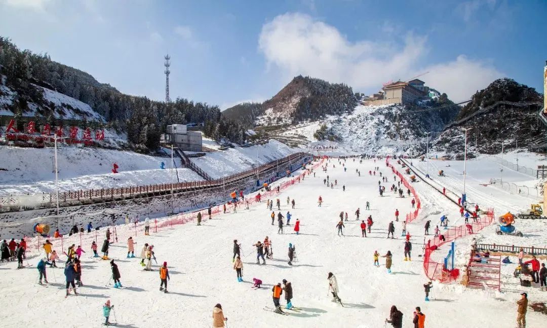 景区以“世界第一索道”梅花山索道为躯,以国画梅花形状规划建设的梅花坪景区、世界纬度最低和西南最大的梅花山国际滑雪场两大景点为干,串点成链,四周星罗棋布大小业态构筑而成。在梅花山,可观峰林山势、云海雾山、森林湖泊,也可赏“日出、云海、佛光、雾凇”等奇特景观,在此处不仅能感受“乌蒙磅礴走泥丸”的宏伟气势,还能亲身演绎速度与激情。