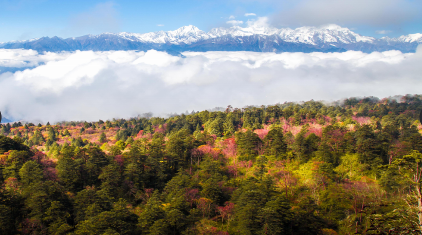 在王岗坪,“一山观四季,四季皆精彩”。春季,是观看贡嘎雪山最佳的季节,特有的春季彩林甚至比秋天更美。夏季,18℃的清凉森林,走出潮湿盆地,告别湿热的夏天,避暑可以很干爽。秋季,彩林漫山红遍,层林尽染,星空璀璨,是隐世康养的胜地。冬季,银装素赛,贡嘎妖娆,沉浸在白色童话世界,沉醉于令人震撼的金山云海。