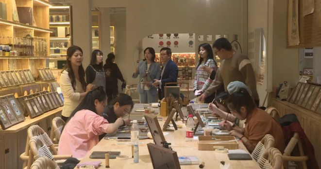 10月13日,参加2025“世界市长对话·敦煌”活动的韩中文化友好协会代表团,走进“敦煌印局”与“敦煌无界”两大文化空间,在指尖互动与沉浸式体验中,感受敦煌文化的当代活力。 在“敦煌印局”,代表团成员被陈列的文创产品吸引。以敦煌壁画元素为灵感的印章、融合丝路纹样的文具等作品,让嘉宾们频频驻足。在工作人员指导下,代表团成员亲手体验版画印制,当蘸满颜料的工具在纸上落下,飞天、藻井等经典敦煌图案逐渐浮现,大家亲身感受传统工艺的匠心与温度。随后,代表团来到“敦煌无界”,嘉宾们被宏大的空间意境吸引。文化书籍陈列其间,壁画元素与现代设计交融,数字光影让古老艺术焕发新彩。大家驻足品赏,感受敦煌文化在创意中流淌的活力,为中韩文化互鉴添彩。