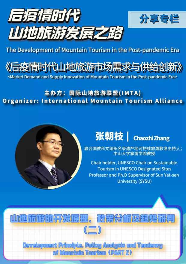 本期由联合国教科文组织名录遗产地可持续旅游教席主持人、中山大学旅游学院教授张朝枝分享《山地旅游的开发原理、政策分析及市场研判》(二):