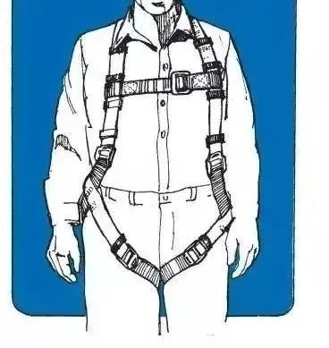每种全身安全带的固有结构都是相同的:肩带、腰带、腿带、安全扣、保护环。