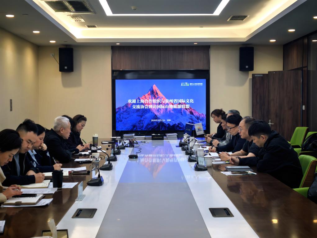2026年3月17日,上海合作组织国家多功能经贸平台秘书长王利、贵州省国际文化交流协会秘书长胡昀、副秘书长王强、中国下一代教育基金会生态中国体验教育项目办公室主任冯航等到访国际山地旅游联盟,参观了联盟总部大楼,并与联盟副主席刘照惠及秘书处各部门负责人开展交流座谈,就推动山地旅游相关合作,促进贵州山地旅游创新发展等方面深入交流。