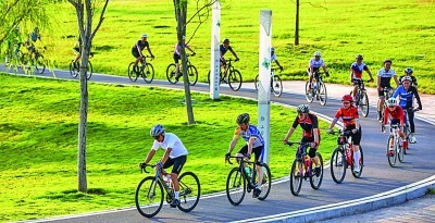 在福建厦门,快速公交接驳的云顶路自行车专用道坐落高架桥上,让骑行者得以漫步云端、体验潇洒浪漫;山西太原建设的滨河自行车专用道,宛如两条红色丝带飘扬在汾河两岸,串联起绿水青山;北京朝阳奥林匹克公园最新推出一条7.5公里骑行路线,其中一条涂装为“彩虹”的骑行路更成为爱好者们的“必打卡点”,让人们与七彩相伴、与美景同行……