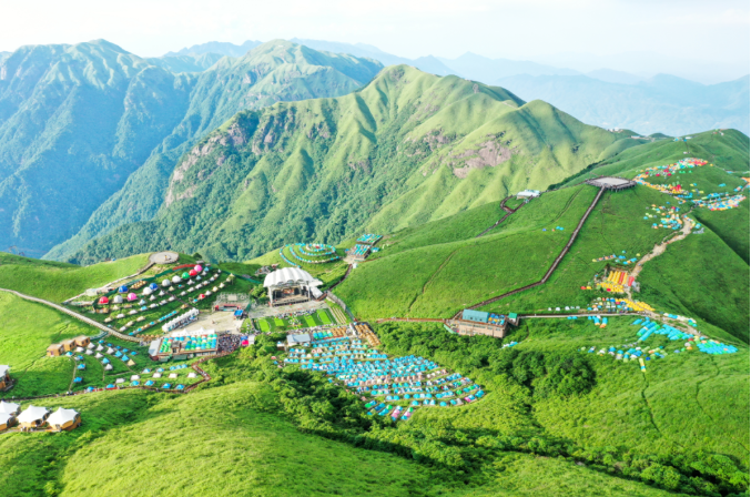 武功山,主峰金顶(白鹤峰)海拔1918.3米,地跨江西萍乡、吉安、宜春三市。它以十万亩高山草甸、壮丽的云海日出和广阔的星空景观而闻名,是近年来中国户外徒步和露营爱好者心中的“天堂”和“网红打卡地”。