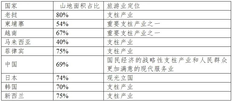 ▼表2-1 部分RCEP国家的山地面积占比及旅游业定位