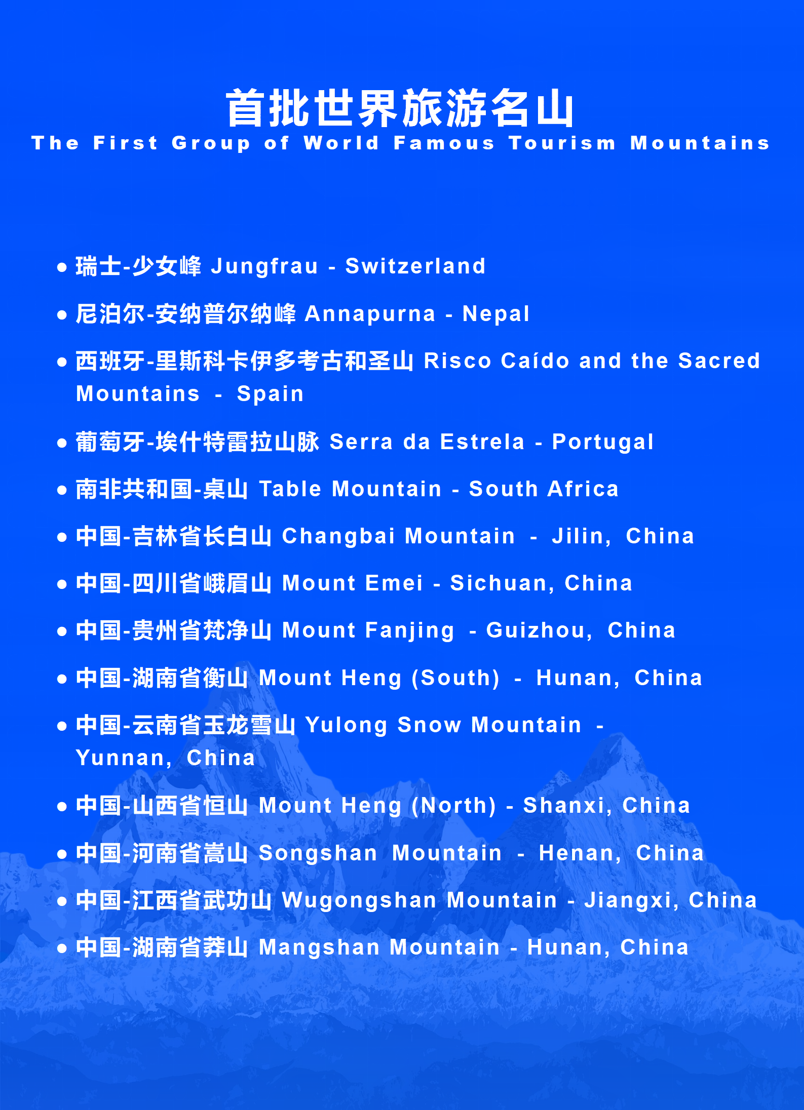 • “首批世界旅游名山”公布,14座名山入选