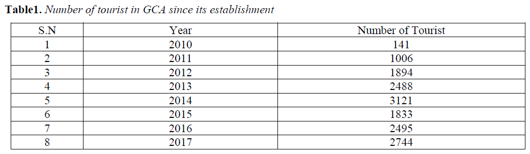 目前,GCAP承担自然资源管理的全部责任,特别是森林管理、非木材林产品监管、旅游推广和遏制非法野生动物犯罪。除了以保护为重点的活动外,它还进行中小型社区发展和推广可替代能源,这有助于森林使用者、保护农民和整个地方社区的利益。在2019财政年度结束时,已取得85。47%的整体进展。2018年尼泊尔旅游业实现总收入为2407亿卢比,提供就业岗位105万个,对该国GDP的贡献达到7。9%。GCA自成立以来,游客人数呈逐年上升趋势。